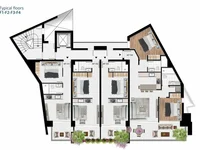 Les appartements de deux chambres se composent d'un salon ouvert et cuisine: 2 chambres et 2 salles de bains et un balcon et terrasses sur le toit pour le penthouse.