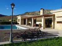La maison principale bénéficie du chauffage au sol, d'un feu et d'un salon spacieux et ouvert.
