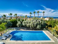 This 7 Bedrooms Spectacular Villa with Breathtaking views. Villa is situated in the distinguished area of St George with stunning views of the world-famous Akamas Peninsula.  This gated villa set in 2000 sq m of glorious gardens with your very own orange, lemon, and olive trees, is perfect for large families. From secluded privacy, you are still less than a 10-minute drive to the bustling strip of Coral Bay where you will find plenty of restaurants, great bars with live entertainment, shops, and even a small amusement park with a mini-golf course, plus 2 of the best beach on the island Coral Bay Beach & Corallia Beach.  The charming fishing harbor of St George with its lovely sandy beach is just a 5-minute drive and the stunning Cap St George Beach Club Resort is just a 4-minute drive.  Paphos Old Town and Kato Paphos with its charming harbor and seafront full of eateries and shops are just a 30-minute drive. The spacious lounge has a huge comfortable seating area-wide glass patio doors framing the beautiful oasis beyond.  Double doors take you through to the dining area and fully fitted kitchen with granite worktops, breakfast bar, and all mod cons including dishwasher, washing machine, oven, microwave, and fridge/freezer, a second kitchen leads off the first for additional workspace and facilities.  There is a double bedroom with its own ensuite bathroom and guest cloakroom also on the ground floor.  The first floor is home to a further 4 double bedrooms, all with ensuite bathrooms, including the master bedroom which leads you out to a large balcony with comfy seating areas and a view of the garden and pool area, a great place to watch a perfect sunset.  There is also a fully equipped laundry room on this floor that has a double sofa bed for extra guests.  With dual access from both inside and outside the villa, there is a fully fitted studio room on the lower ground floor complete with kitchen and ensuite shower room.  A second bedroom also shares the kitchen and bathroom facilities. Outside amongst the tranquil private gardens, citrus orchards, aromatic herb garden, and lush lawns, you will find a fantastic 12m x 6m infinity swimming pool (heating optional ) with Roman steps and built-in hot tub, surrounded by luxury sun loungers, sun umbrellas, and an outside shower.  There is an additional optional hot tub on the covered main terrace with lots of comfortable seating areas, al fresco dining facilities, and bbq.  With so many delightfully regal spaces to ensconce yourself and enjoy the oh so peaceful and relaxed surroundings.   - Air Conditioning - En suite bathrooms - Fire place - Guest toilet - Master Bedroom - Open Kitchen - Separate Kitchen - VRV (Multi-Split Type Air Conditioners) - Barbeque Area - Private Parking (covered) - Security Alarm - Storage room - Airport: 30 min drive - Beach: 5 min Drive - Golf: 15 min Drive - Mountain views - Sea views - Town: 10 min drive - Title deeds Available