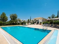 Bungalow total area of 151sqm and consists of an open plan living/dining room and kitchen, a guest toilet, two bedrooms (one of which is en-suite with walk-in closet), and a bathroom. There is also a 50sqm basement with an en-suite bedroom and a boiler room. The bungalow enjoys the use of a private yard with a private overflow swimming pool, private jacuzzi, barbeque area, and a parking space. The wider area is the Aphrodite Hills resort that includes residential developments, hotel, spa and golf courts. From bungalow enjoys easy access to the Limassol - Paphos motorway.