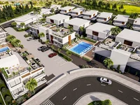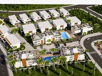 À l'intérieur: Le projet présente différents aménagements: 3+1 villas individuelles sur parcelles de 320 à 425 m2, 3+1 maisons de ville sur parcelles de 395 à 430 m2 et 4+1 villas sur parcelles de 415 à 575 m2. Les appartements 1+1 et 2+1 sont également présentés, avec des superficies de 40-47 m2 et 89-93 m2. Tous les appartements au premier étage ont accès au jardin, et au deuxième étage - terrasses panoramiques. Toutes les propriétés résidentielles sont louées en finition complète avec placards et plomberie.