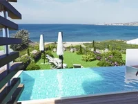 maison prestigieuse offre un accès direct à une plage de sable à sa porte, une vue dégagée sur la mer et la nouvelle Marina de Paphos, et une piscine privée.