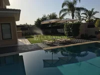 It is built in a plot of land of 800m2, thereby having ample of privacy. Despite its age of 15 years, it is very well maintained and kept in impeccable condition. The house has an L-shape layout with view and access to the garden and swimming pool from all ground floor living areas and kitchen. Very close attention was given to the quality of materials and finishes used in this house, with parquet and marble flooring. The house boasts a lovely design and comprises of an entrance, a dining area, a very comfortable double living room, and a spacious kitchen with fitted electrical appliances. On the first floor there are 4 well sized bedrooms, one ensuite, plus a study / sitting room and 2 balconies. Outside it has covered veranda 50m2, an overflow swimming pool 5x12m, a barbeque area with bar, and a mature garden with 60m lawn area. It has also a maids ensuite room, and covered parking for 2 cars.