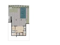 On the second floor there is the kitchen with the big salon, guests toilet, lift all over the floors. On the first floor there are 4 bedrooms with the own bathrooms (one of the bathrooms has the exit to the garden with the shower). On the ground floor big rest room, big laundry, sauna and one room with the own bathroom.