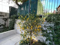 The first line, fully renovated to the highest standard 2-bedroom ground floor apartment, is located in the most impressive gated complex near the beach- The Residence complex is now available for rent. The complex has security 24/7, a large swimming pool, a gym area, private access to the beach, and beautiful, well-maintained mature gardens. The apartment is located 100 meters from the Mediterranean Sea. The covered area is 102sq.m, covered veranda is 16sq.m and plot 185sq.m. The property is fully furnished and equipped with electrical appliances. It has 2 bathrooms (showers), 2 spacious bedrooms with built-in wardrobes, a living room and dining areas, a laundry room, an open-plan kitchen, and windows (manual) shutters. Water pressure system, photovoltaic, underfloor heating(water), and VRV air-conditioning system (hot/cold).