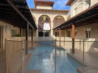 2 Salons avec des hauts plafonds impressionnants et des fenêtres à clerc. Le sol en marbre ajoute de l'élégance, créant une grande première impression