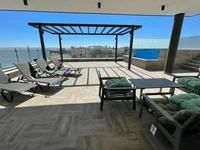 Vue sur la mer et vue sur la montagne disponibles car il couvre un étage complet (le dernier étage) et une immense terrasse avec une piscine privée et des chaises longues.