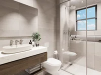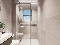 L'aménagement large et ouvert relie une cuisine moderne, une salle à manger et un salon, ouvrant sur une véranda privée avec vue sereine. Les deux chambres sont généreusement dimensionnées, avec le maître bénéficiant d'une salle de bains privative, tandis qu'une deuxième salle de bains offre un confort pour les clients ou la famille.