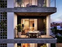 Le cœur de l'appartement est son spacieux salon et salle à manger, parfait pour la vie quotidienne et divertissante. Les portes coulissantes prolongent l'intérieur d'une véranda généreuse, offrant un espace extérieur supplémentaire.