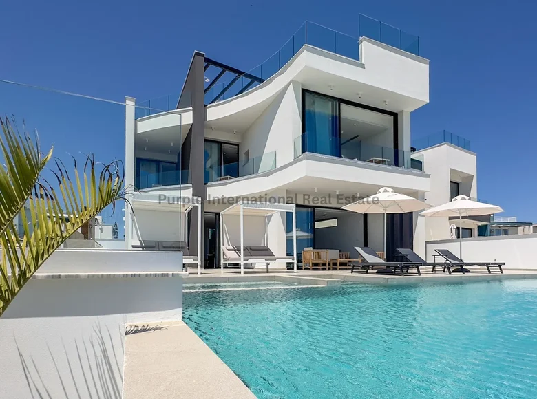 La maison dispose de quatre chambres spacieuses, chacune avec sa propre salle de bains, et un total de six salles de bains dans la villa, qui fournit suffisamment d'espace pour la famille et les invités. La disposition comprend un rez-de-chaussée, un ascenseur pour un accès facile à tous les niveaux et de grands espaces de vie ouverts. Les portes en verre panoramique remplissent la maison de lumière naturelle et offrent une vue imprenable sur la mer et la côte.