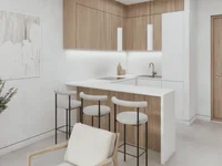 L'appartement d'une chambre est un mélange parfait d'intimité et de style, conçu pour les couples, les particuliers ou les investisseurs. Le salon est ouvert, combinant le salon, la salle à manger et la cuisine en un seul espace accueillant qui s'écoule vers une véranda privée. De grandes fenêtres apportent une lumière naturelle et mettent en valeur les vues côtières.