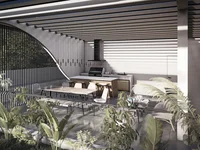 The interiors are designed for both everyday life and entertaining, with a large open-plan kitchen, dining, and living area that opens onto a private veranda. The kitchen is fully equipped with premium appliances from Bosch, Midea, and Samsung, offering a perfect blend of style and practicality.