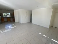 Appartement de trois chambres au troisième étage à Agios Theodoros, Paphos. Elle comprend une cuisine ouverte avec salon/salle à manger, trois chambres (une en suite) et une salle de bains.