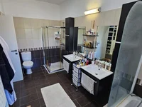 6 chambres (5 chambres au 1er étage, 2 salles de bains et une salle de bains et 1 chambre au rez de chaussée avec salle de bains)