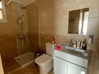 La propriété dispose de deux salles de bains, dont un master en suite, un salon lumineux ouvert, et un accès direct à un jardin privé. Il est équipé de la climatisation complète et bénéficie d'une piscine commune et d'un parking privé. L'appartement est idéalement situé à distance de marche de la plage et des équipements locaux.