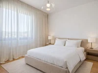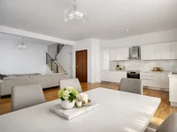 De grandes fenêtres et un accès direct aux balcons et aux terrasses permettent à la lumière naturelle de remplir l'espace, créant une atmosphère chaleureuse et pratique dans toute la maison.