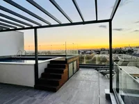 Le penthouse dispose de deux chambres en suite, d'un salon spacieux et d'une cuisine moderne. La disposition comprend de grandes vérandas couvertes et une terrasse privée sur le toit avec une salle de bains supplémentaire.
