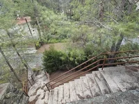 Le rez-de-chaussée comprend un coin salon confortable, une cuisine séparée, des toilettes et une douche. Les chambres sont situées sur un niveau élevé avec une salle de bains et des toilettes, offrant des fonctionnalités pratiques pour la vie de famille.