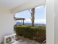 The apartment features an open-plan kitchen, living, and dining area, one bedroom, a bathroom with WC, and an uncovered veranda with unobstructed views of Pegeia and Coral Bay.
