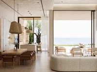 Dans la zone ouverte, il y a une impressionnante piscine à débordement et jacuzzi, où l'air frais de la mer et la lumière douce du coucher du soleil créent une atmosphère de détente complète.