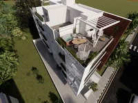 La chambre à coucher est conçue comme une retraite privée, positionnée loin du salon principal pour assurer la tranquillité et le confort. Il offre suffisamment d'espace pour un lit double, des placards intégrés et des meubles supplémentaires tels que des tables de chevet ou un petit espace de travail. La chambre bénéficie de lumière naturelle et d'une bonne ventilation, contribuant à un environnement frais et reposant.