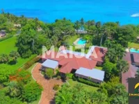La grande salle de style méditerranéen impressionne autant que la plage de sable et la grande piscine. La grande véranda offre une vue sur la mer aqua et un espace généreux pour se détendre à l'ombre ou divertir. Trois suites spacieuses disposent de grands placards en cèdre et de salles de bains impeccablement conçues.