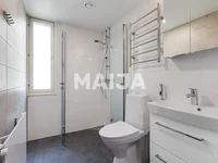 Bienvenue à explorer ce triangle spacieux de 77,5 m2 à Mellunmäki, Helsinki! La disposition fonctionnelle de l'appartement offre deux chambres spacieuses, un salon lumineux, une cuisine séparée, une salle de bains et un WC séparé. Le confort de vie est ajouté par un balcon privé.