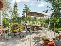 Devant la maison une grande terrasse confortable.