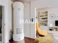 Cette zone de villa unique et désirable est maintenant une maison unique pour toute la famille d'être libérée à la prochaine. Cette maison semi-détachée avec toit mansarde a des espaces de vie sur trois étages et les chambres sont adaptées pour répondre aux besoins les plus divers. La cour se marie magnifiquement avec la pente de la zone et les vues du balcon font ressortir la couche et la hauteur typiques de la zone. La proximité de la mer, des parcs, de magnifiques terrains de sport et des services rend le rêve finlandais de vivre la meilleure réalité possible. Accueil chaleureux !