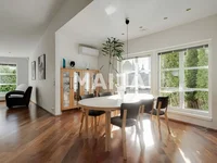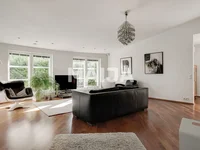 A spacious kitchen with high quality appliances and a fair counter space makes cooking enjoyable. The kitchen is crowned with a stylish baking oven. The kitchen can accommodate an everyday dining table. In the adjoining dining area, on the other hand, a larger table for dinner parties, for example.