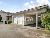 The front yard is tiled and you park your car directly either in a warm two-car stable or under a carport. The carport is equipped with an electric car charging station.