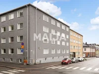 The layout of the apartment is great! The living room-kitchen is a uniform bright and spacious space, where the kitchen is conveniently located in the corner of the apartment. The kitchen can accommodate up to two people to cook, and there is a nice cupboard space. The living room is a good size, and it is easy to decorate. The bedroom is large, so it is possible to place, for example, a workstation there. Storage space can be found comfortably: in the hallway there is a walk-in closet, and in the bedroom there are cupboards, where original knob-pullers have been preserved as a charming detail. The bathroom/toilet space can accommodate a washing machine, and in connection with the plumbing renovation, the hexagonal gray tile typical of the construction period has been chosen as the floor tile, the walls are fresh white tile.