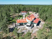 exceptional quality and versatile ensemble on offer. This elegant property is set on a cliff high on top of a hill surrounded by a fine spruce forest.