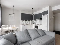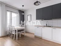 La disposition de l'appartement est claire: le salon et la cuisine forment un ensemble unifié, à partir duquel il ya un passage direct à la cour de l'appartement. La chambre est séparée et la salle de bains est spacieuse. L'appartement dispose également de son propre sauna. Il y a un espace de stockage dans l'appartement et dans les salles de stockage de la société de logement.