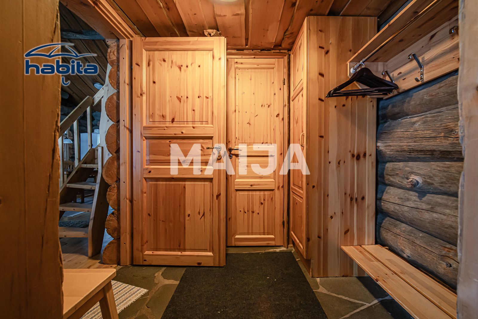 A vendre: une 1/2 part d'un appartement atmosphérique en bois rond dans un emplacement paisible et privé à la fin de Kelorakka Road. À seulement 1 km à pied du centre Levi. L'appartement dispose de deux chambres, qui fonctionnent aussi bien que des espaces de travail éloignés. La cuisine ouverte et le salon avec deux lofts créent une sensation merveilleusement spacieuse. La buanderie et la salle de bains disposent d'un accès direct à la terrasse couverte. Vraiment chaleureux et authentique charme de Laponie!