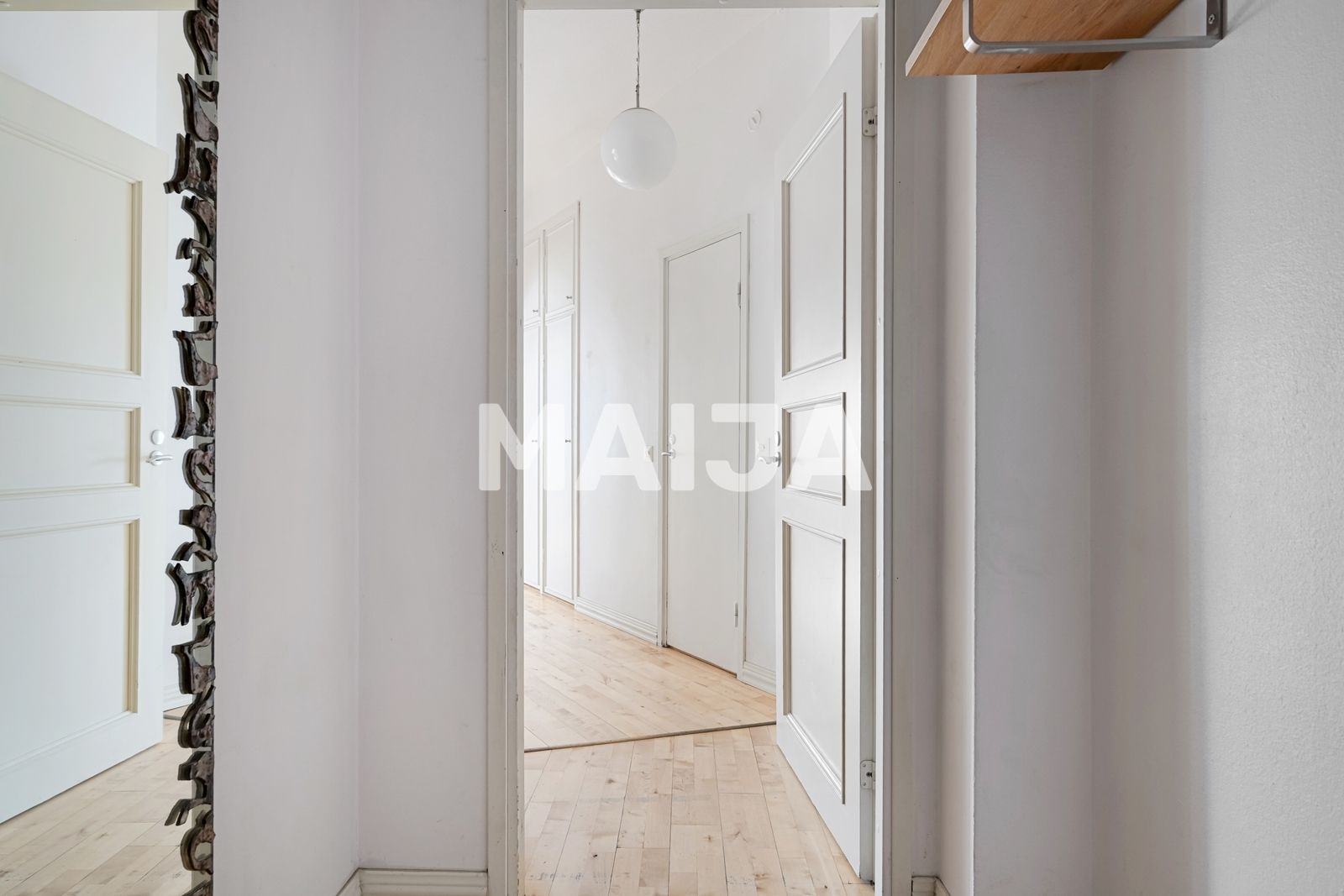 Sur Miina Sillanpää Rue, juste à côté de la place du marché Hakaniemi, cette charmante maison de ville est située au quatrième étage. Achevée en 1938, la maison représente l'architecture fonctionnelle des années 30, alliant linéarité claire et style intemporel. Les grandes chambres et les grandes fenêtres apportent un bel espace et de la lumière à l'appartement.
