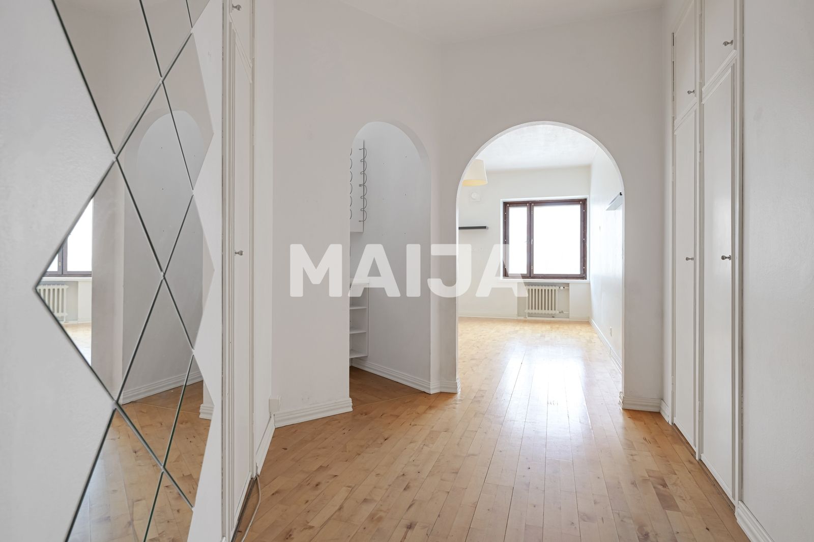 Unité d'angle lumineuse et spacieuse dans un bâtiment funk construit en 1938 — au cœur de Hakaniemi.