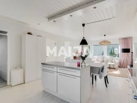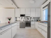 Un appartement à pied apporte de la lumière dans deux directions. La maison a deux chambres, dont l'une est clairement plus grande. La salle de bains est accompagnée d'un sauna élégant et spacieux, qui complète le confort de vie.