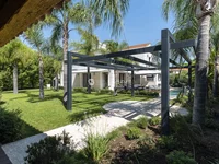 La villa comprend au premier étage: salon, cuisine équipée. Au deuxième étage : 3 chambres avec salles de bains et deux terrasses. Sur le territoire de 1100 mètres carrés, un jardin bien entretenu planté d'arbres méditerranéens. Il y a aussi un gazebo à l'ombre, une piscine et des chaises longues. La villa est entièrement rénovée dans un style classique moderne. Toutes les chambres sont équipées de la climatisation et des stores électriques, équipements modernes et système de sécurité.