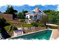 Vente d'une villa dans un style moderne, d'une superficie de 250 mètres carrés.m. Situé sur les collines d'Ez, entre Nice et Monaco, dans une résidence fermée, donnant sur la mer et les montagnes. Maison de 2 étages comprend un salon de 70 mètres carrés.m. avec cheminée et accès à la terrasse, d'où une belle vue s'ouvre, 4 chambres, chacune avec sa propre salle de bains. Sols chauffés. Climatisation à froid. Un studio séparé. Piscine 11m X 3,5m. Garage pour 2 voitures. Terrain de 4 000 mètres carrés.m.