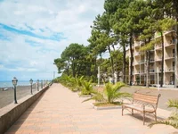 A vendre chalet sur la côte, à seulement 300 mètres de la célèbre plage avec sable magnétique, dans le village de station balnéaire en développement actif de Shekvetili (Géorgie).