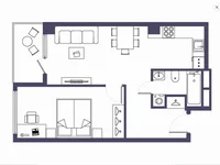 Appartement de 1 chambre avec une superficie de 50.4 sq. m. dans un avant-projet au 20ème étage dans un haut-lieux moderne avec des acomptes jusqu'en avril 2028.