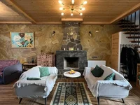1er étage: salon avec cheminée, cuisine avec grande table à manger, salle de bain avec douche;