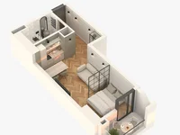 A vendre un Studio spacieux dans une maison en construction, l'achèvement de la construction - en 2027. L'appartement est situé dans un complexe résidentiel de luxe sur la deuxième ligne.