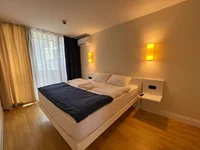 L'appartement est équipé de meubles et d'équipements modernes. Le complexe est situé sur la première ligne dans la partie centrale de la station balnéaire de Batumi - l'emplacement le plus populaire pour les clients et les résidents de la ville.