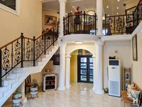Numéro de bien: ADJ039 Cette propriété est une superbe maison de plain-pied entièrement meublée de 7 chambres avec 2 quartiers de garçons en vente à Adjiriganor. Le bâtiment est bien entretenu avec des chambres spacieuses, climatiseurs, télévision, mobilier de salon, lits, eau de secours et un terrain pour enfants. Il est rangé dans un environnement serein et confortable pour votre détente et votre plaisir. Les caractéristiques de la maison;Chambres: chambre principale, salon/salle à manger, débarras, toilettes invités, chambres avec salle de bains, cuisine, commodités (intérieur): climatiseurs, cuisine équipée + appareils intégrés (cuisinière électrique et gaz + four, micro-ondes, plaques de cuisson), chauffe-eau, réfrigérateur, lave-linge, placards et dressing intégrés, commodités (extérieur): réservoirs d'eau, générateur d'électricité de secours, parking, jardin Le prix de vente demandé pour cette propriété est 900 000 $ négociable Call or Email SellRent Ghana pour organiser une consultation