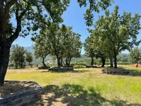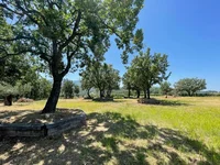 Il est nivelé, clôturé, a des portes d'entrée, forage d'eau, système d'irrigation automatique.