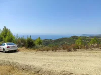 A vendre terrain de 24215 mètres carrés à Kassandra, Chalkidiki. Autorisation de construire pour 400 mètres carrés. La terre a une vue sur la mer.