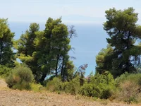 A vendre terrain de 7700 mètres carrés à Kassandra, Chalkidiki. La terre a une vue magnifique sur la mer, la forêt.