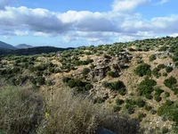 A vendre terrain clôturé de 43000 mètres carrés en Crète. Il est en dehors du plan de la ville. Le territoire a: construction, fourniture d'électricité. Permis de construire pour 8600 mètres carrés.